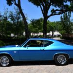 The 1969 Chevrolet Chevelle stands as an iconic representation of American muscle car prowess, a true automotive legend that has left an indelible mark on the annals of history. With its bold and commanding presence, this classic specimen exudes power and elegance in equal measure, encapsulating the spirit of a bygone era when horsepower and style reigned supreme. Under the hood lies the beating heart of this beast: a commanding 7.4-liter 454 cubic-inch V8 engine. A powerhouse that stirs the soul, this engine epitomizes raw American muscle, delivering a staggering 450 horsepower that commands both respect and attention. The deep rumble that emanates from the exhaust is a symphony of power, a harmonious declaration of the might that resides within. Each blip of the throttle is a crescendo of mechanical poetry, an invitation to experience unadulterated exhilaration on every stretch of road. Paired with the robust engine is an automatic 400 Turbo, 3-speed transmission. This transmission, renowned for its reliability and robustness, serves as the perfect conduit for channeling the engine’s potency to the rear wheels. Its seamless shifts enhance acceleration and cruising comfort, while the three-speed configuration ensures a balance between brute force and precision control. This harmonious combination of powertrain components elevates the driving experience to a level of unbridled joy, where every press of the accelerator is met with a surge of power. The exterior of the 1969 Chevrolet Chevelle is draped in a captivating shade of blue, a hue that reflects the sky on a clear summer day. This choice of color not only accentuates the car’s muscular contours but also pays homage to the era’s penchant for vibrant automotive finishes. The car’s design is a masterpiece of balance, where bold lines and elegant curves coalesce to create a timeless silhouette. Every angle reveals the careful craftsmanship that has gone into preserving the Chevelle’s quintessential form. Stepping into the cabin, you are enveloped by a sea of blue, a testament to the era’s dedication to thematic design. The interior, meticulously crafted, exudes an air of vintage authenticity while providing comfort that stands the test of time. The marriage of form and function is evident in every detail, from the ergonomically designed controls to the supple upholstery that beckons both driver and passengers to embark on memorable journeys. With a mere 36,351 miles on the odometer, this 1969 Chevrolet Chevelle showcases its status as a cherished classic. It stands as a window into the past, an era when cars were not just transportation, but symbols of aspiration and identity. In conclusion, the 1969 Chevrolet Chevelle captures the essence of American muscle with its commanding presence, breathtaking performance, and unmistakable design. From the 7.4-liter V8 engine to the 3-speed automatic transmission, from the captivating blue exterior to the coordinated blue interior, every element harmonizes to create an automotive masterpiece. This car is not merely a mode of transportation; it’s a testament to an era when automobiles roared, style reigned, and the open road called out to be conquered.